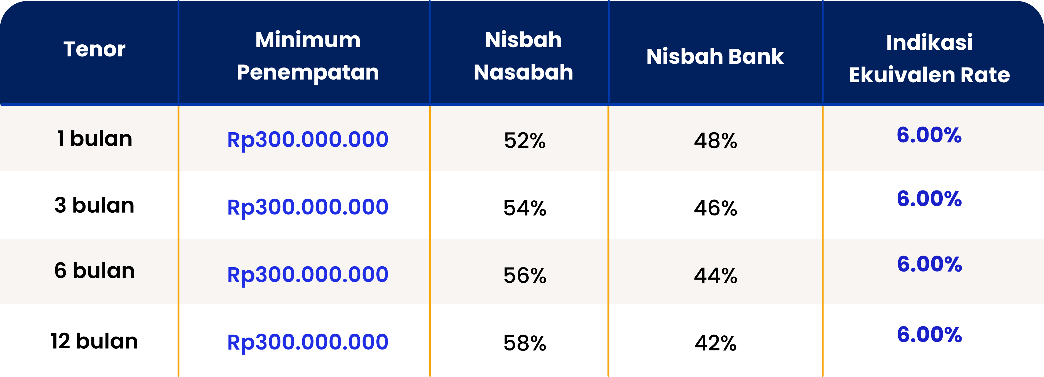 Deposito untuk bisnis perusahaan Anda dengan bagi hasil yang kompetitif dan memberi rasa tenang dengan prinsip syariah.
