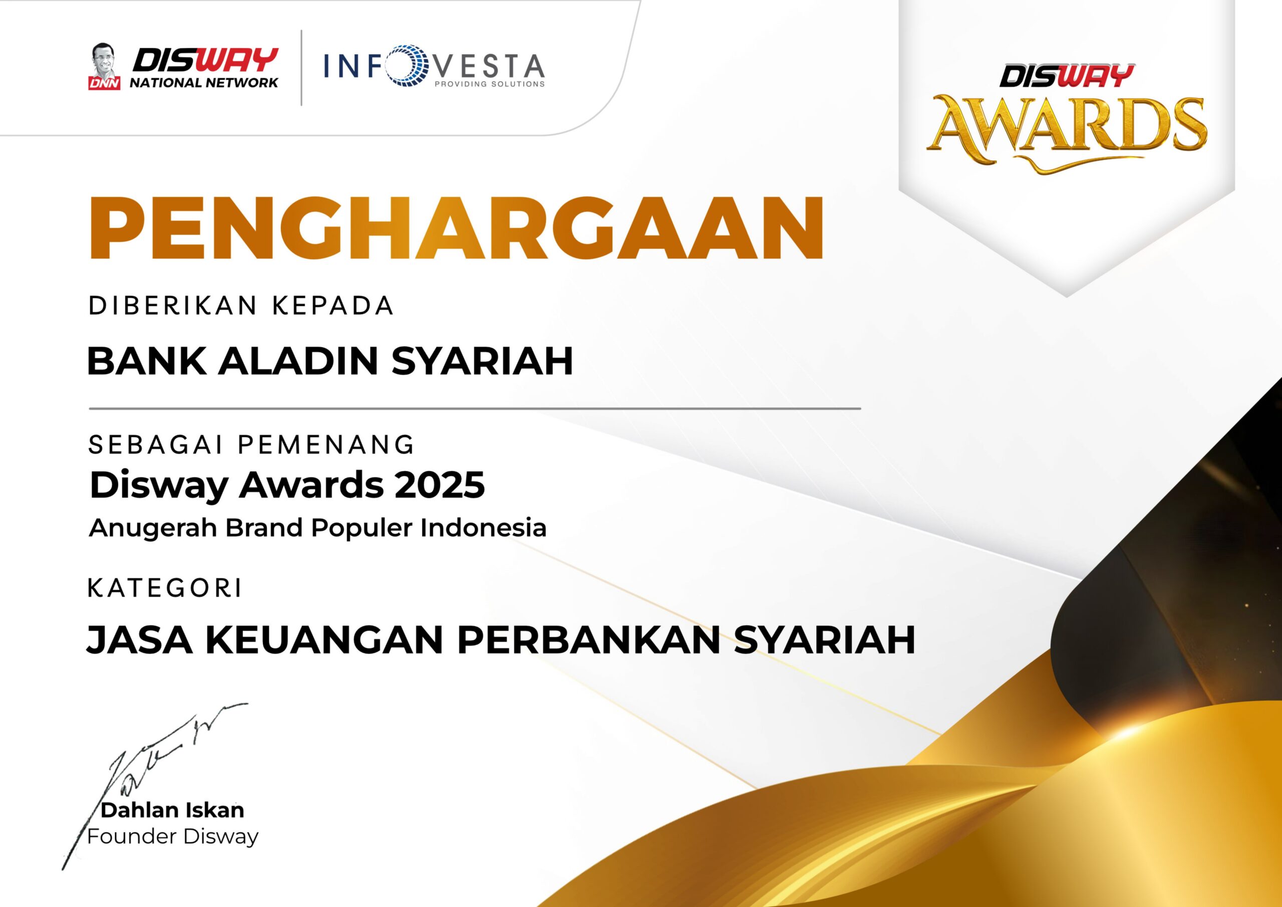 Aladin Bank berhasil meraih penghargaan The Most Promising Islamic Digital Bank dalam ajang CNBC Indonesia Award 2021, yang diselenggarakan di Jakarta pada 21 Oktober 2021