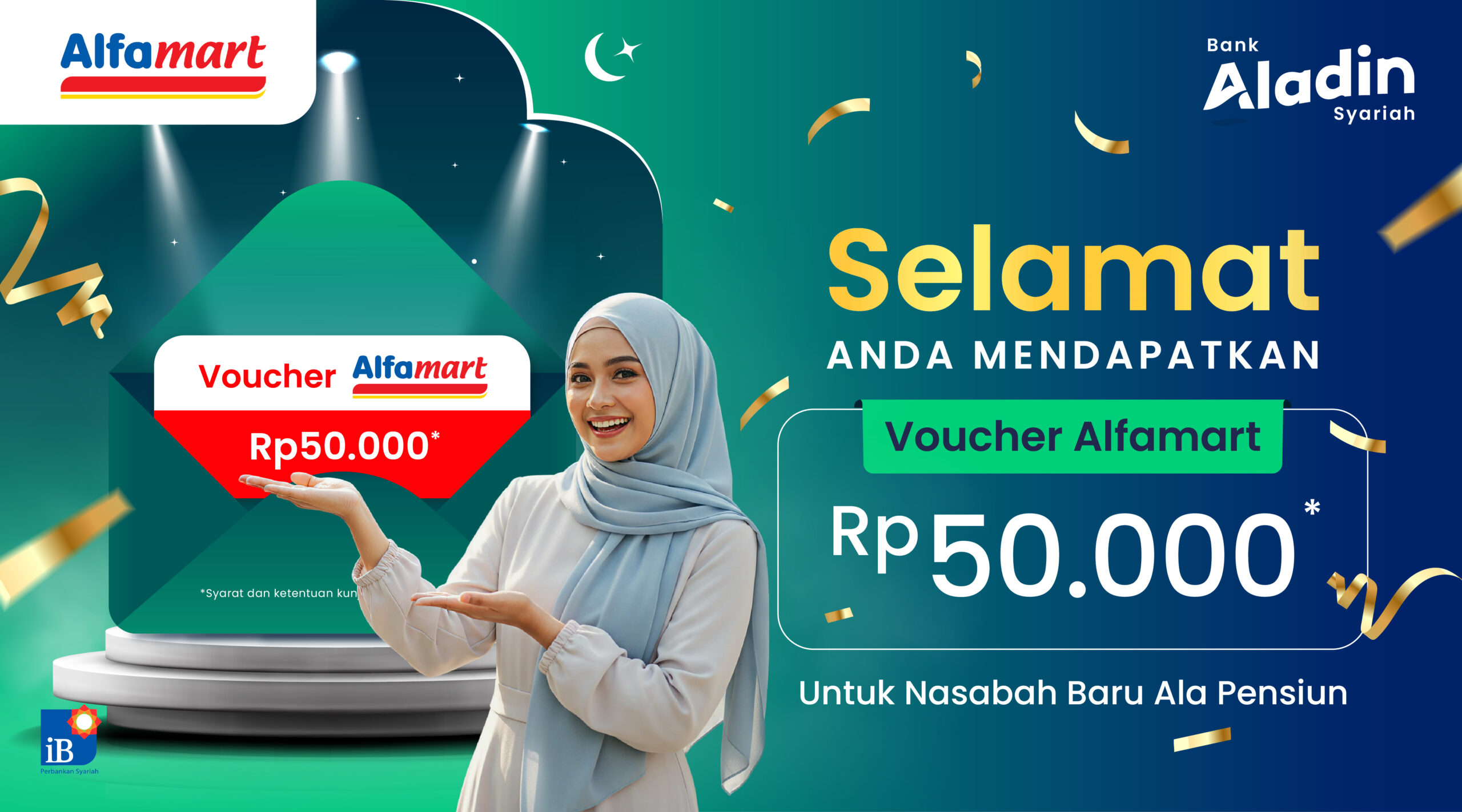 Nasabah Ala Pensiun yang memenuhi ketentuan berhak menerima e-voucher Alfamart sebesar Rp50.000 (lima puluh ribu rupiah) yang akan dikirimkan melalui media komunikasi resmi dari Bank Aladin Syariah. E-voucher tersebut berlaku selama 2 (dua) bulan, terhitung sejak tanggal penerimaan e-voucher oleh nasabah atau sesuai dengan tanggal yang diinformasikan oleh Bank Aladin Syariah pada pemberitahuan.