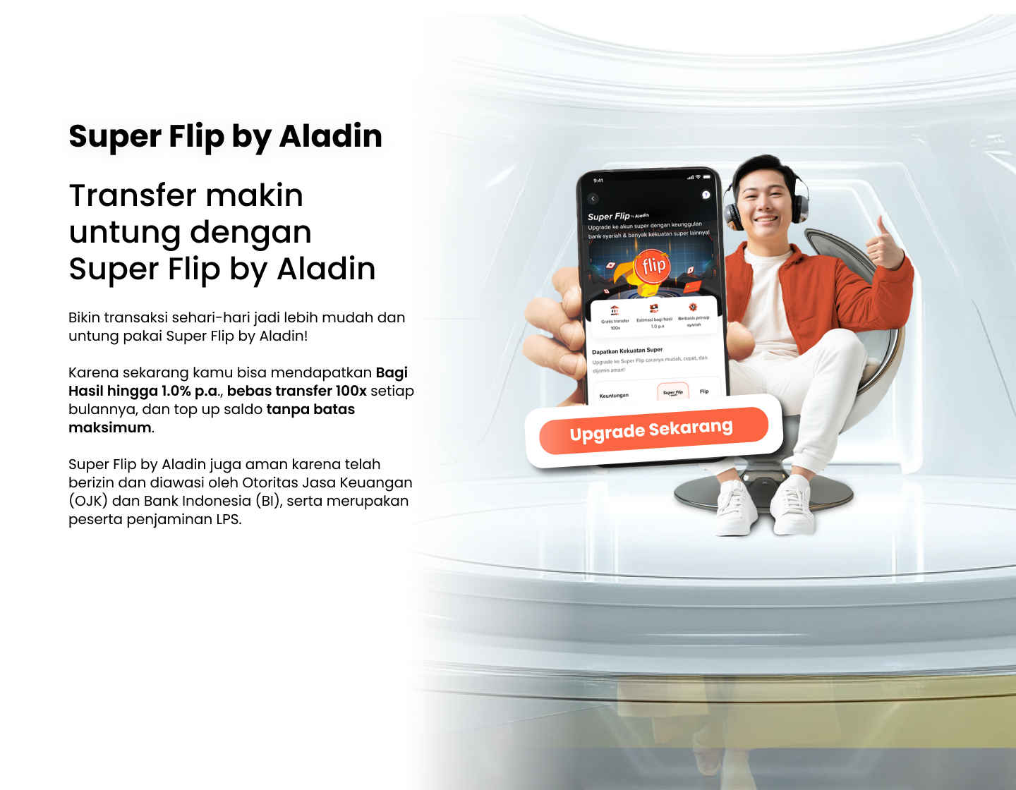 Selamat, kamu berhasil membuat akun Super Flip by Aladin. Siap-siap buat menikmati beragam keuntungannya!